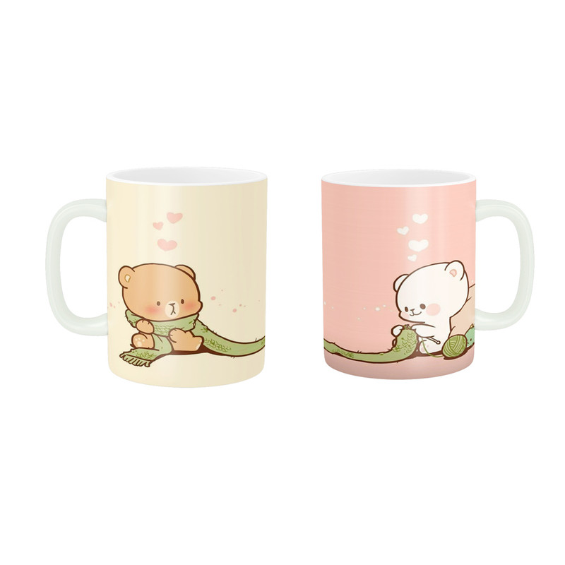 ماگ پادآفرین طرح فانتزی مدل ست عاشقانه کارتونی خرس های کیوت و بامزه کد 044 مجموعه دو عددی